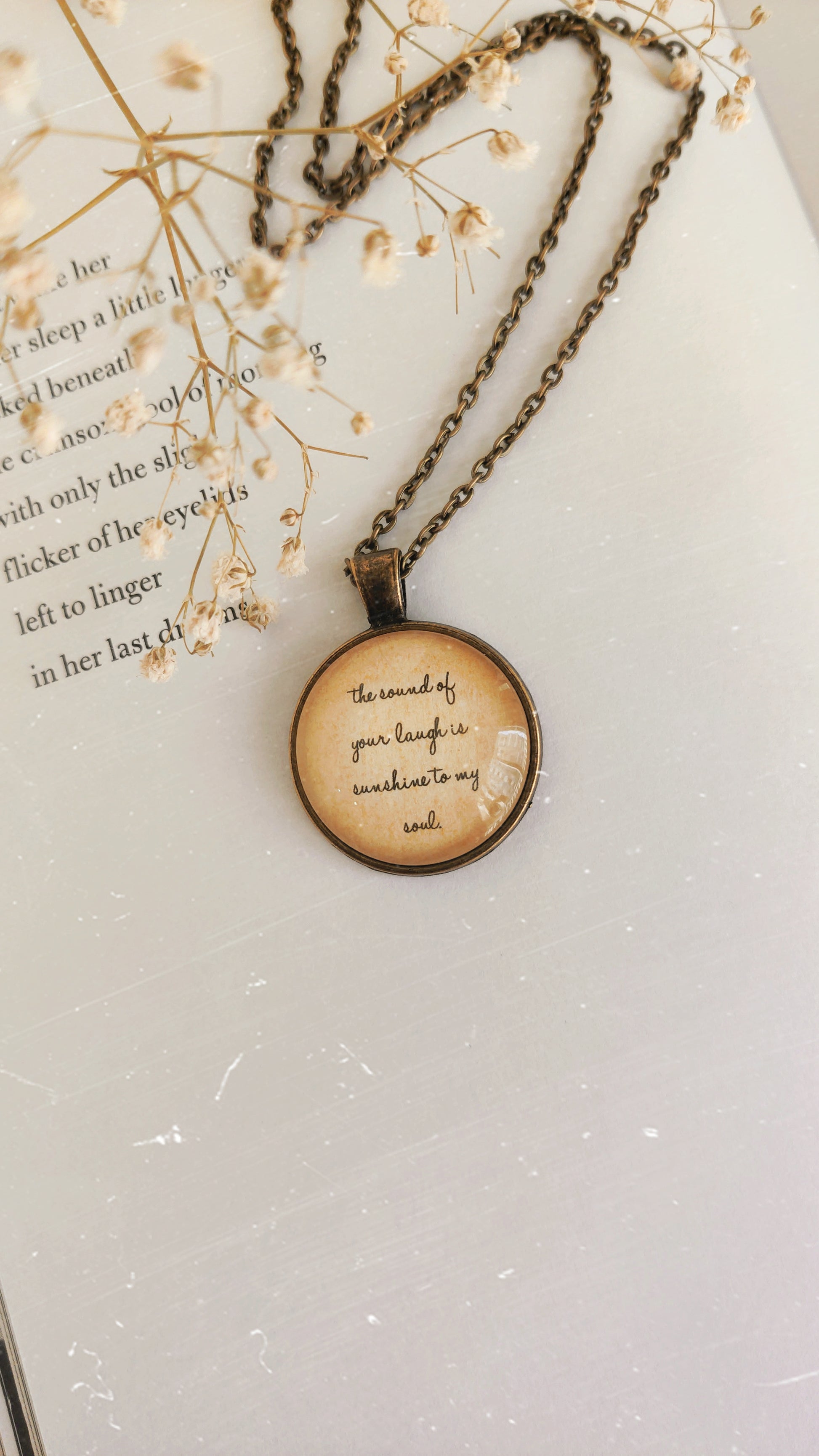 A beautiful quote pendant is just the perfect dream for every bookish person out there! Perfect for every booklover and bookworm!