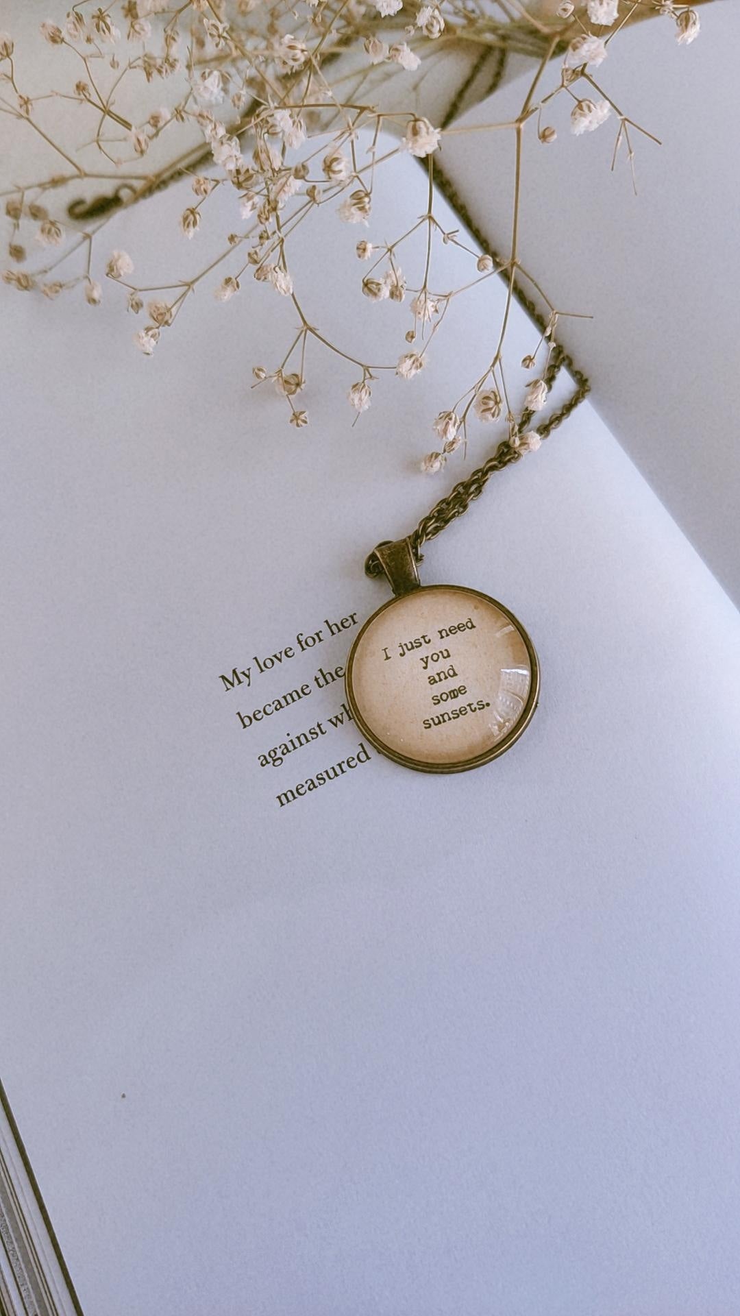 A beautiful quote pendant is just the perfect dream for every bookish person out there! Perfect for every booklover and bookworm!