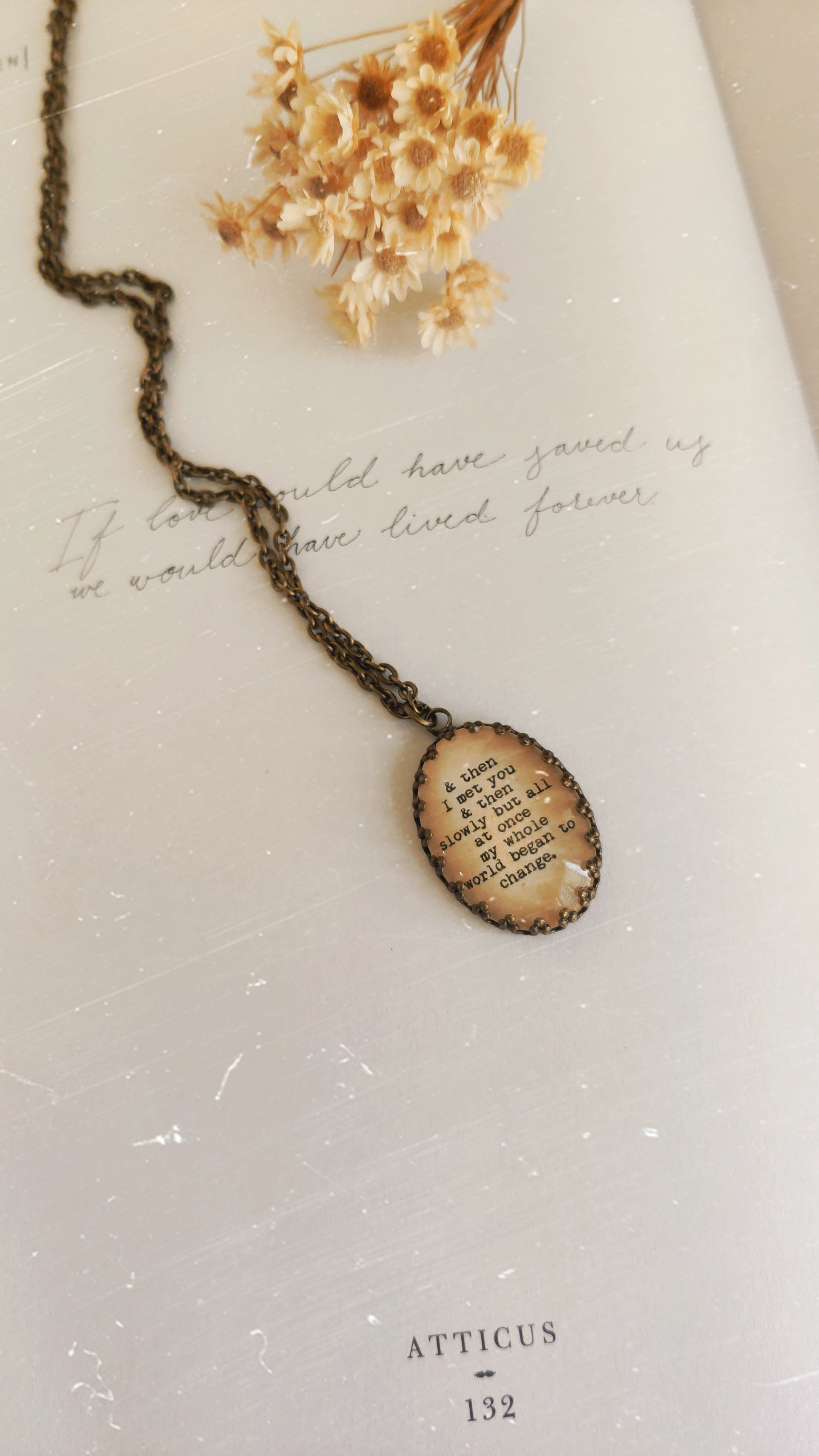 A beautiful quote pendant is just the perfect dream for every bookish person out there! Perfect for every booklover and bookworm!