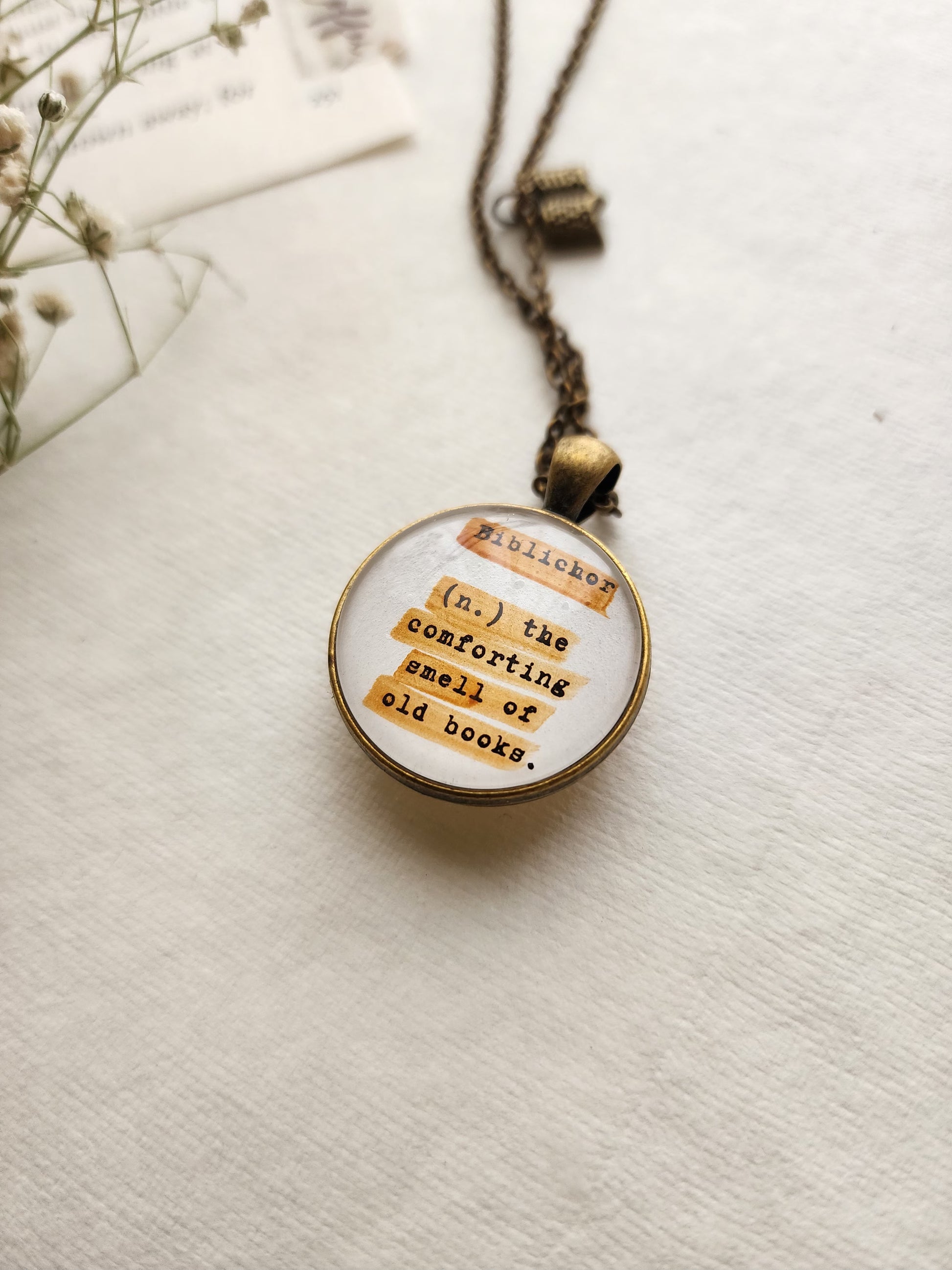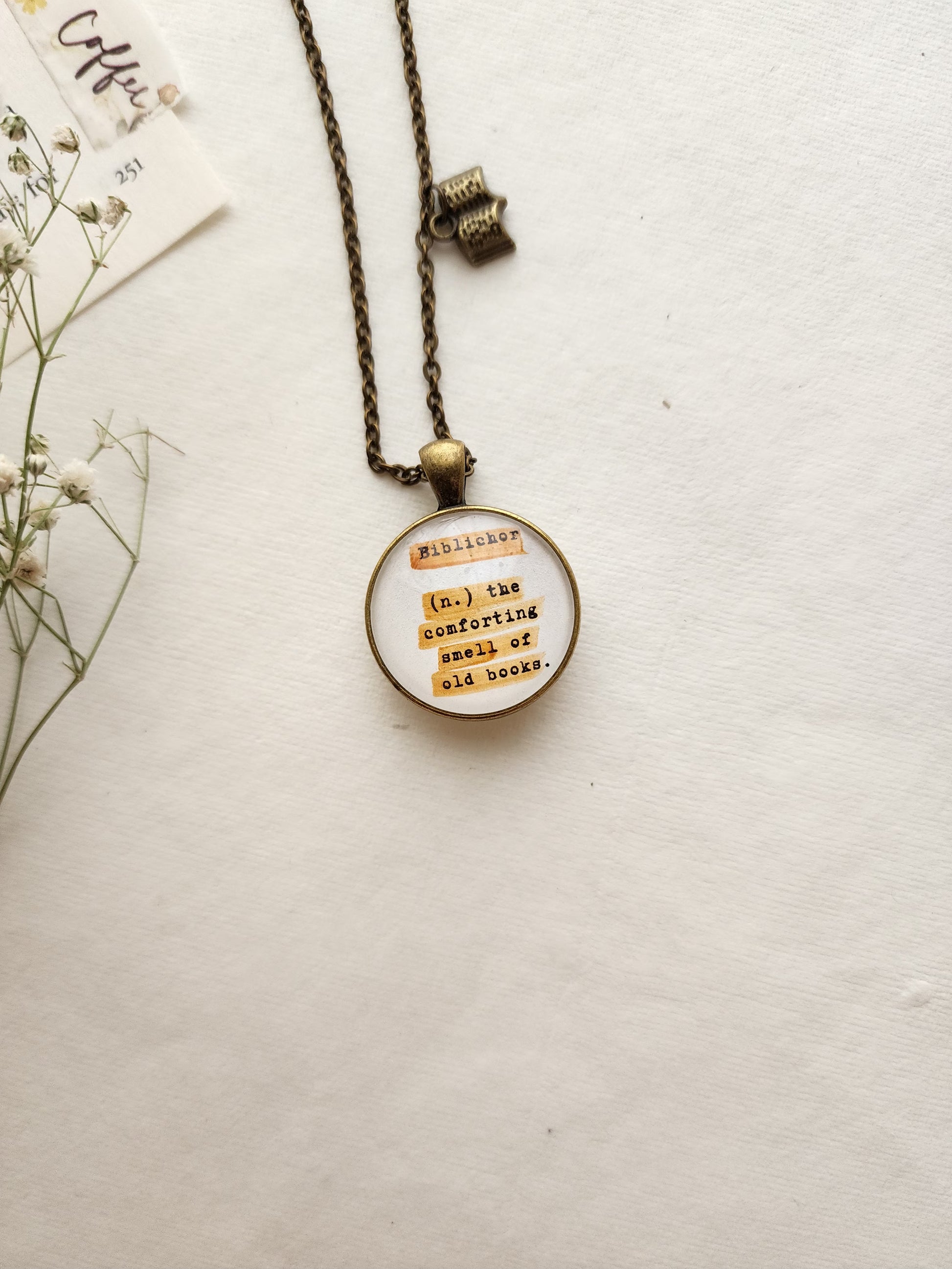 This handcrafted quote pendant necklace is the perfect accessory for every booklover, bibliophile, and literary soul. Featuring a meaningful quote sealed under glossy epoxy resin, this piece adds a touch of vintage charm to your outfit while celebrating your love for books and beautiful words.
