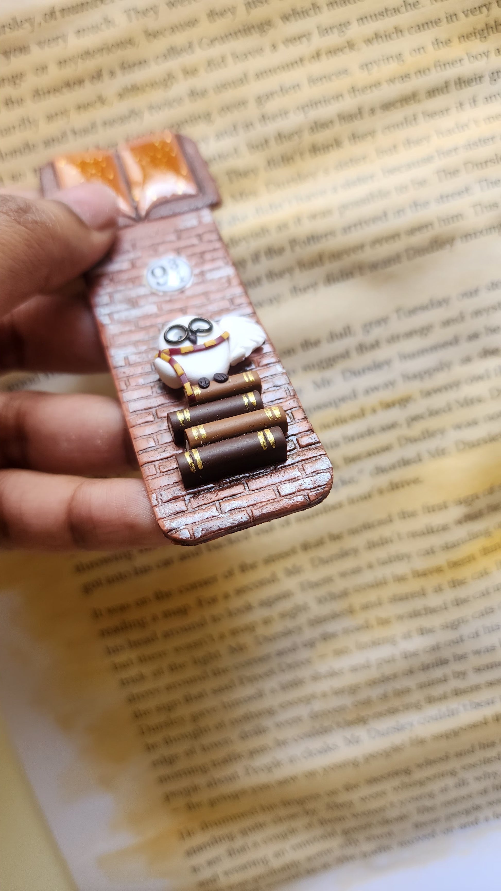 Step into the wizarding world with this charming Platform 9¾ bookmark! Featuring a wise, bespectacled owl perched atop spellbound books against a brick wall with the iconic platform sign, this bookmark is a perfect companion for every Potterhead. Whether you're rereading your favorite Hogwarts adventure or diving into a new magical tale, this bookmark keeps your place with a dash of enchantment.