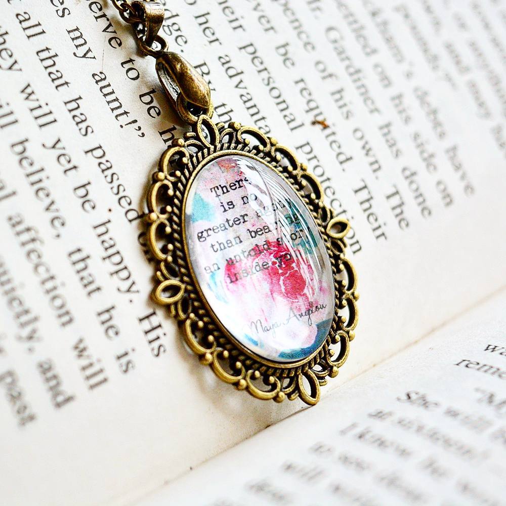 A beautiful quote pendant is just the perfect dream for every bookish person out there! Perfect for every booklover and bookworm!
