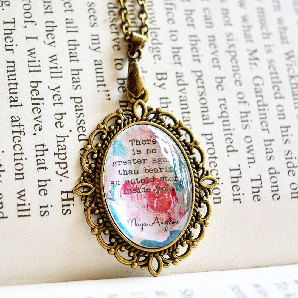 There is no greater agony.... - Maya Anglou Quote Pendant