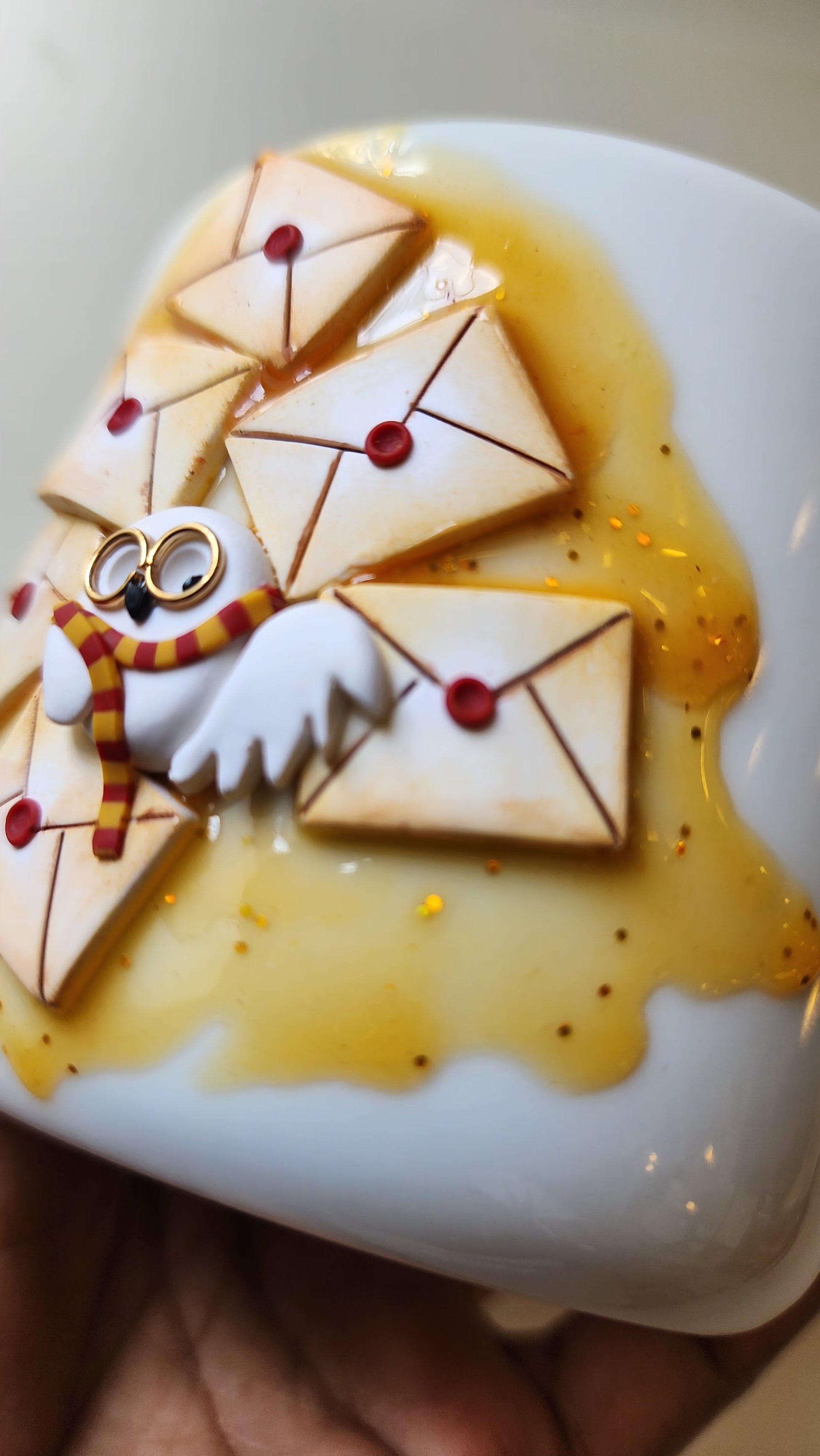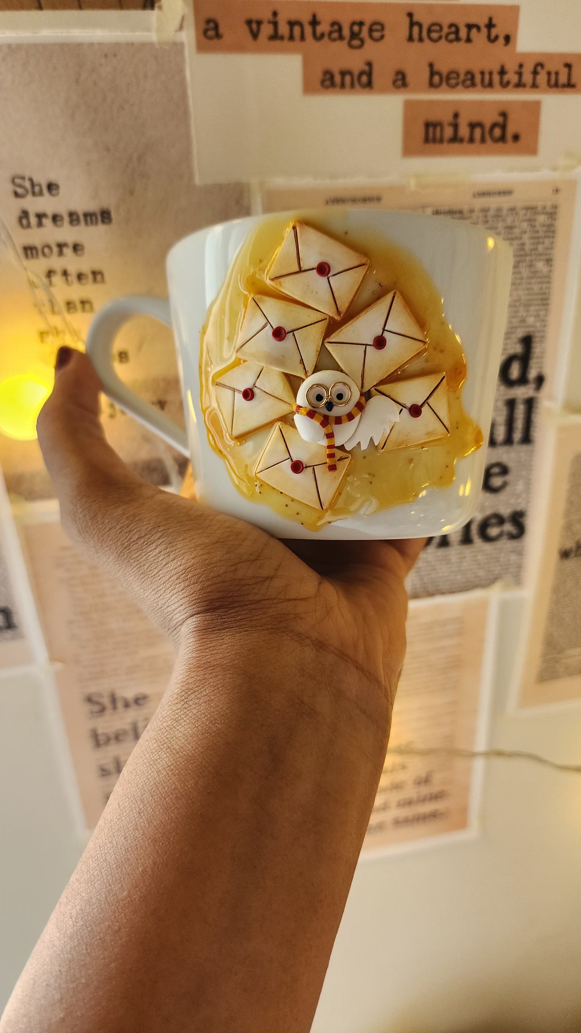 Experience the magic of the wizarding world every time you sip from this Harry Potter inspired Owl Post mug. Handcrafted with intricate detail, the design features Hedwig the snowy owl, wrapped in a Gryffindor scarf, surrounded by stacks of Hogwarts acceptance letters – a scene straight from every Potterhead’s dreams.