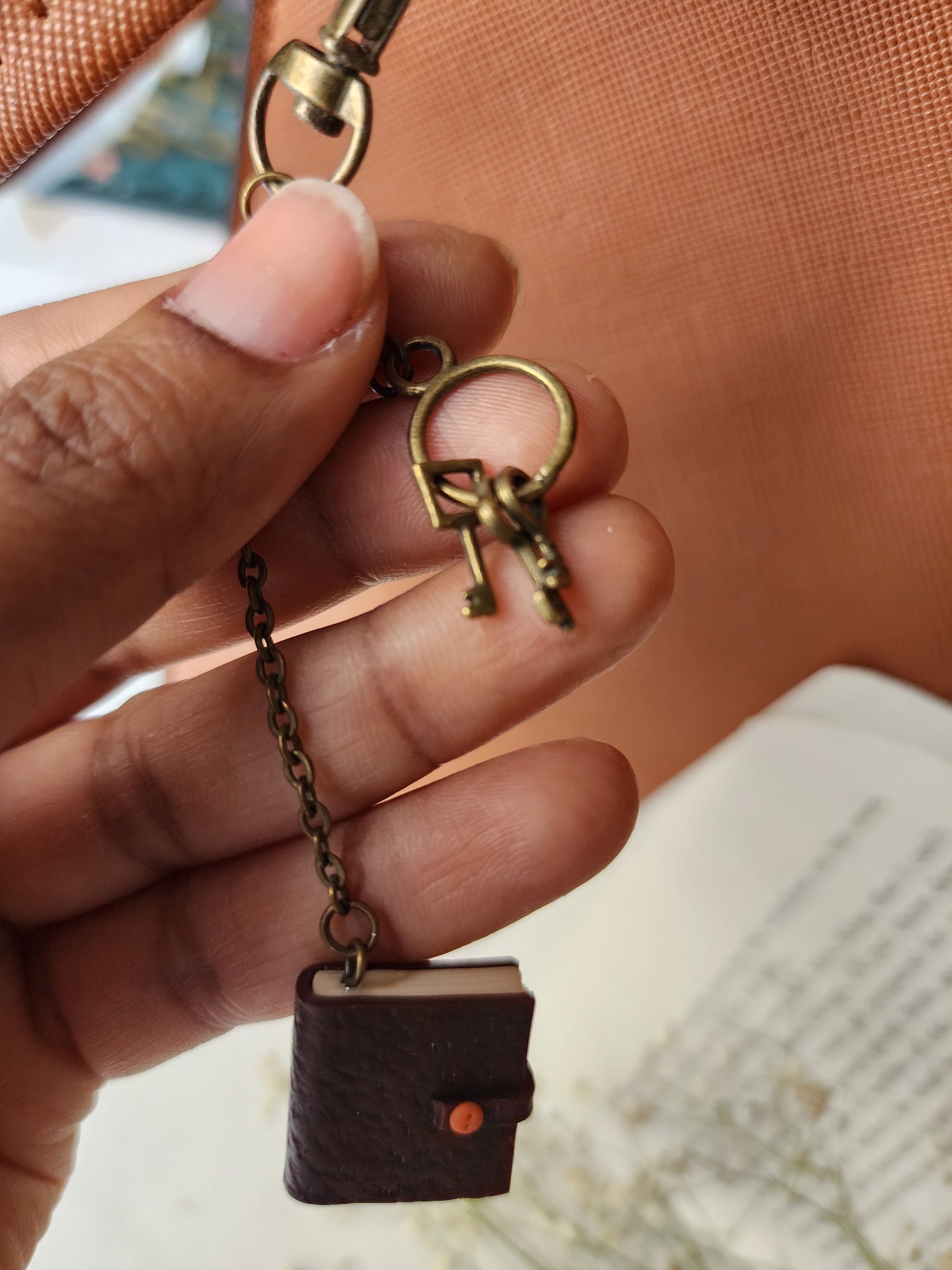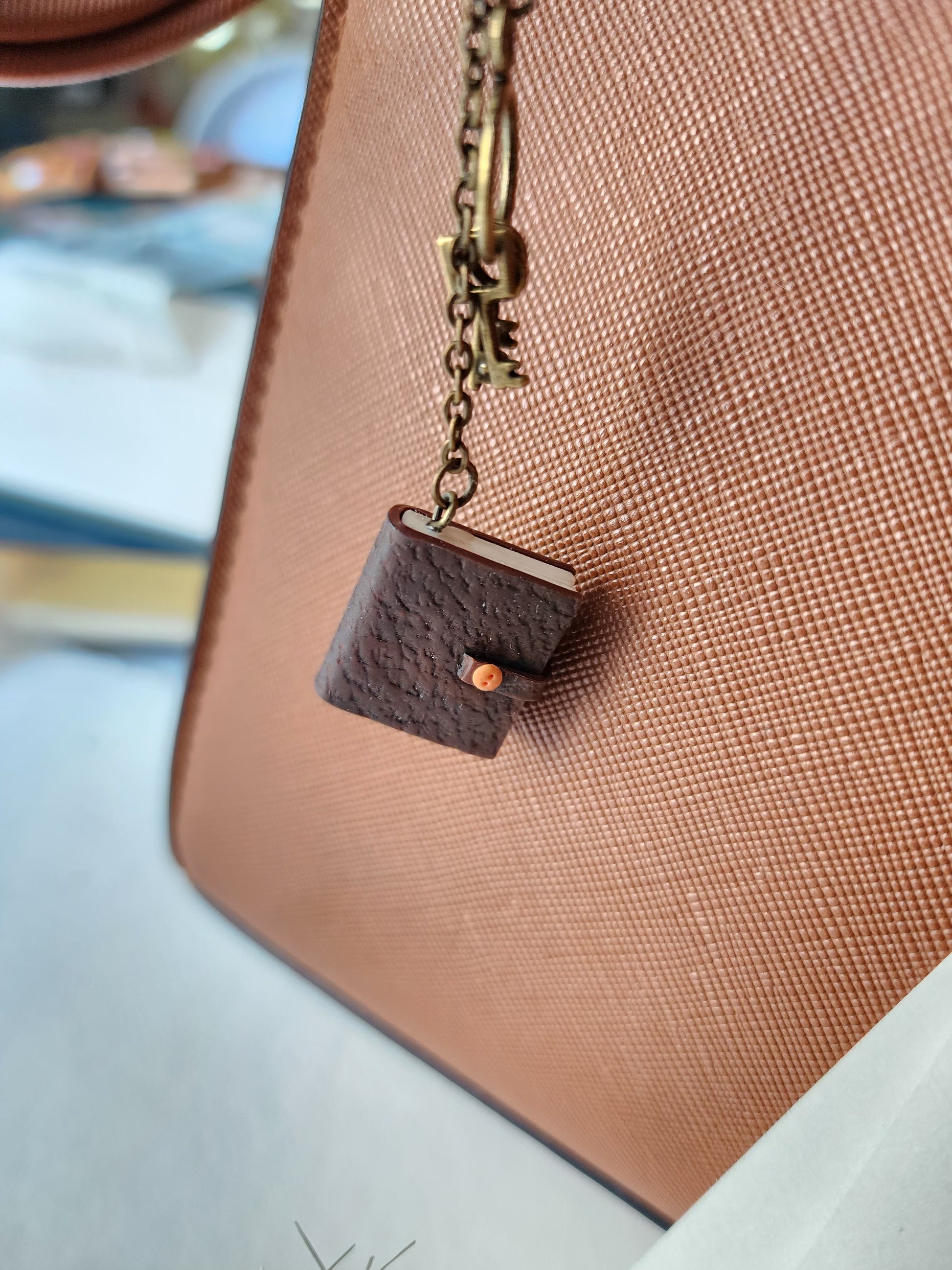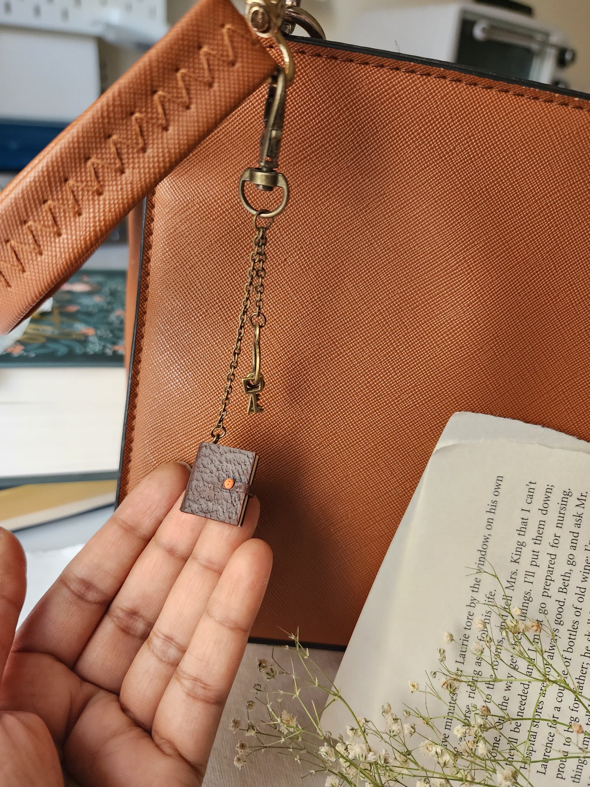 This handmade bag charm is a tiny literary scene lovingly sculpted from polymer clay. Lightweight yet detailed, it adds a magical bookish accent to your handbag, backpack, or tote.