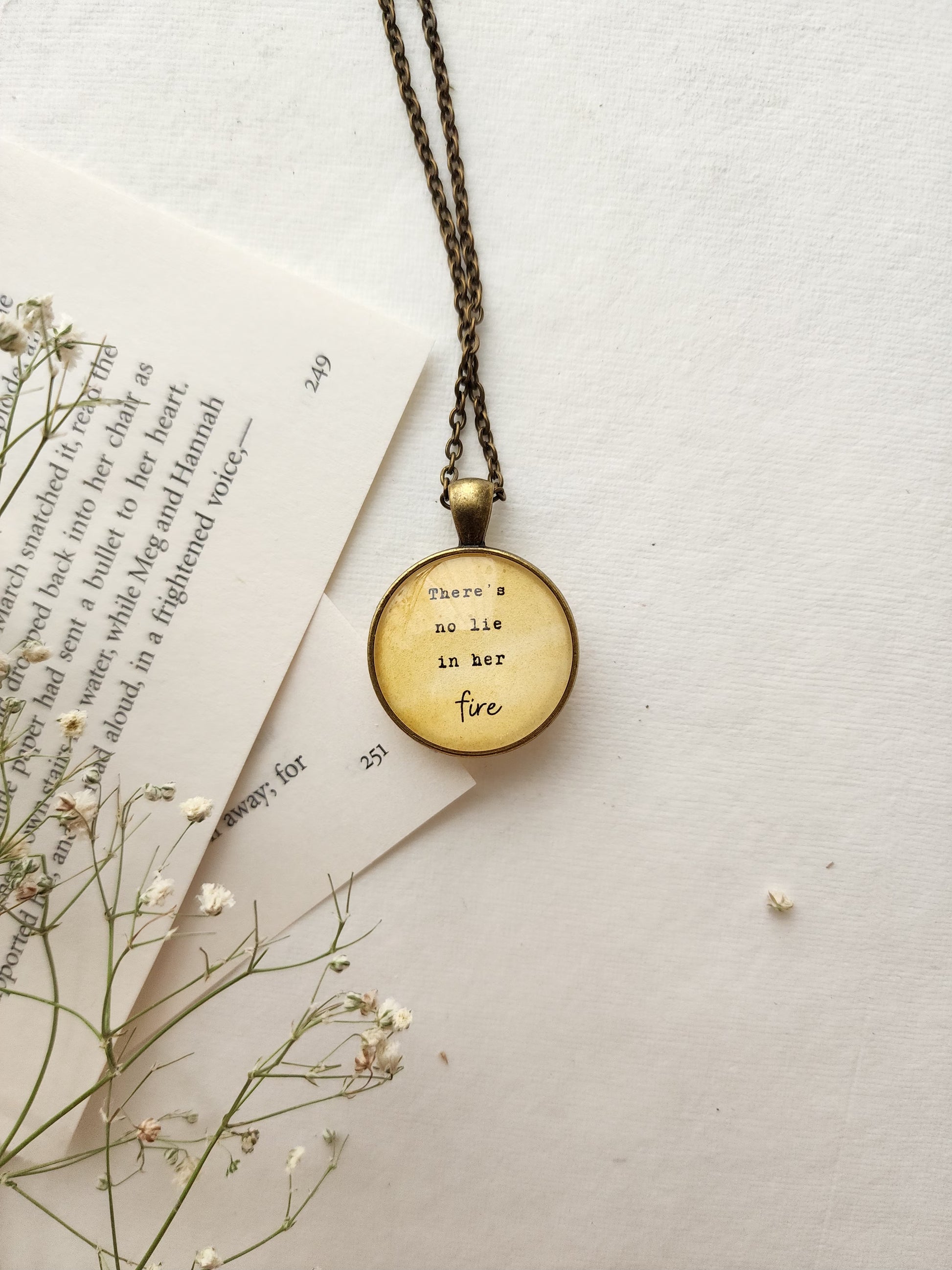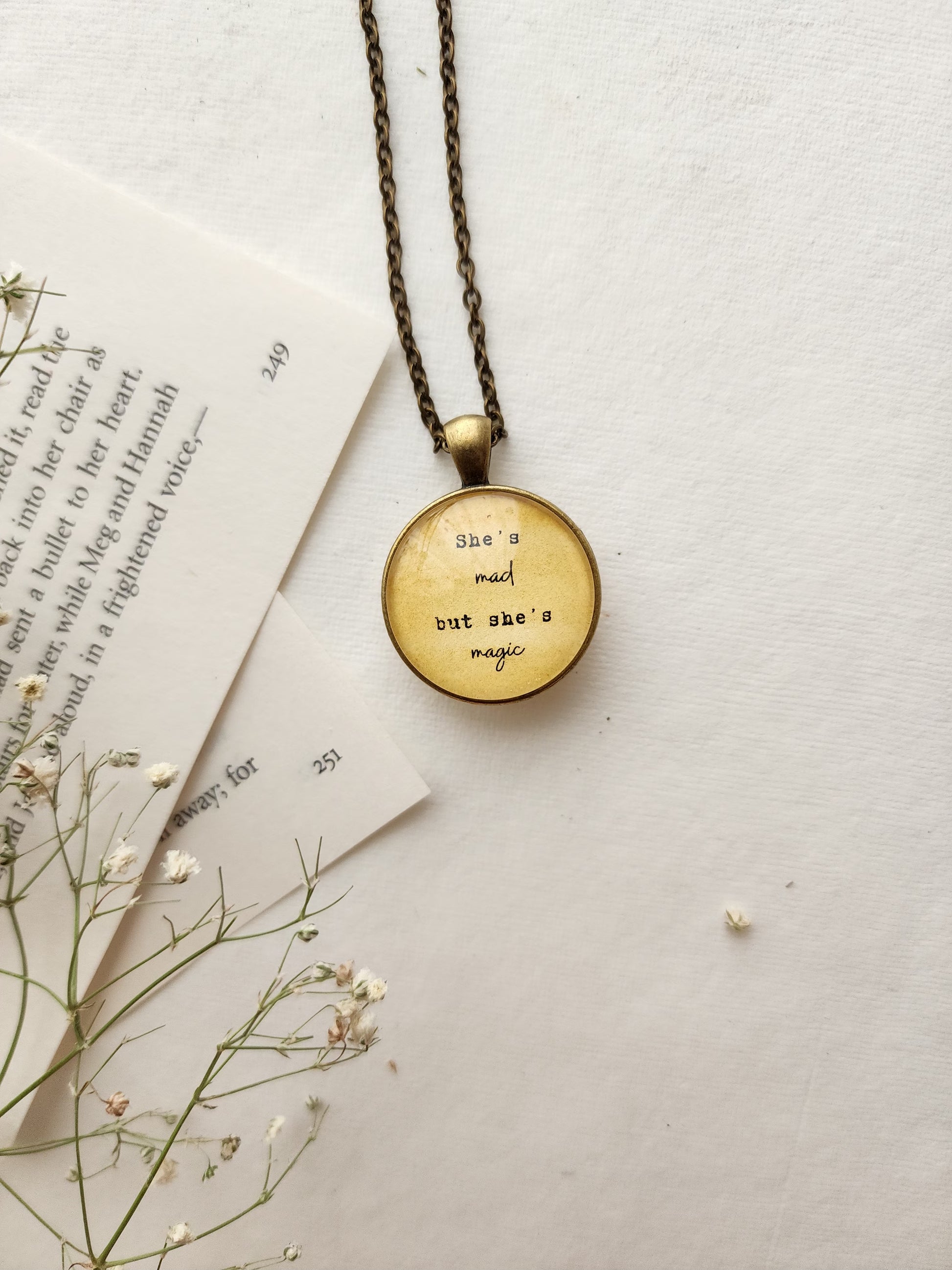 This handcrafted quote pendant necklace is the perfect accessory for every booklover, bibliophile, and literary soul. Featuring a meaningful quote sealed under glossy epoxy resin, this piece adds a touch of vintage charm to your outfit while celebrating your love for books and beautiful words.