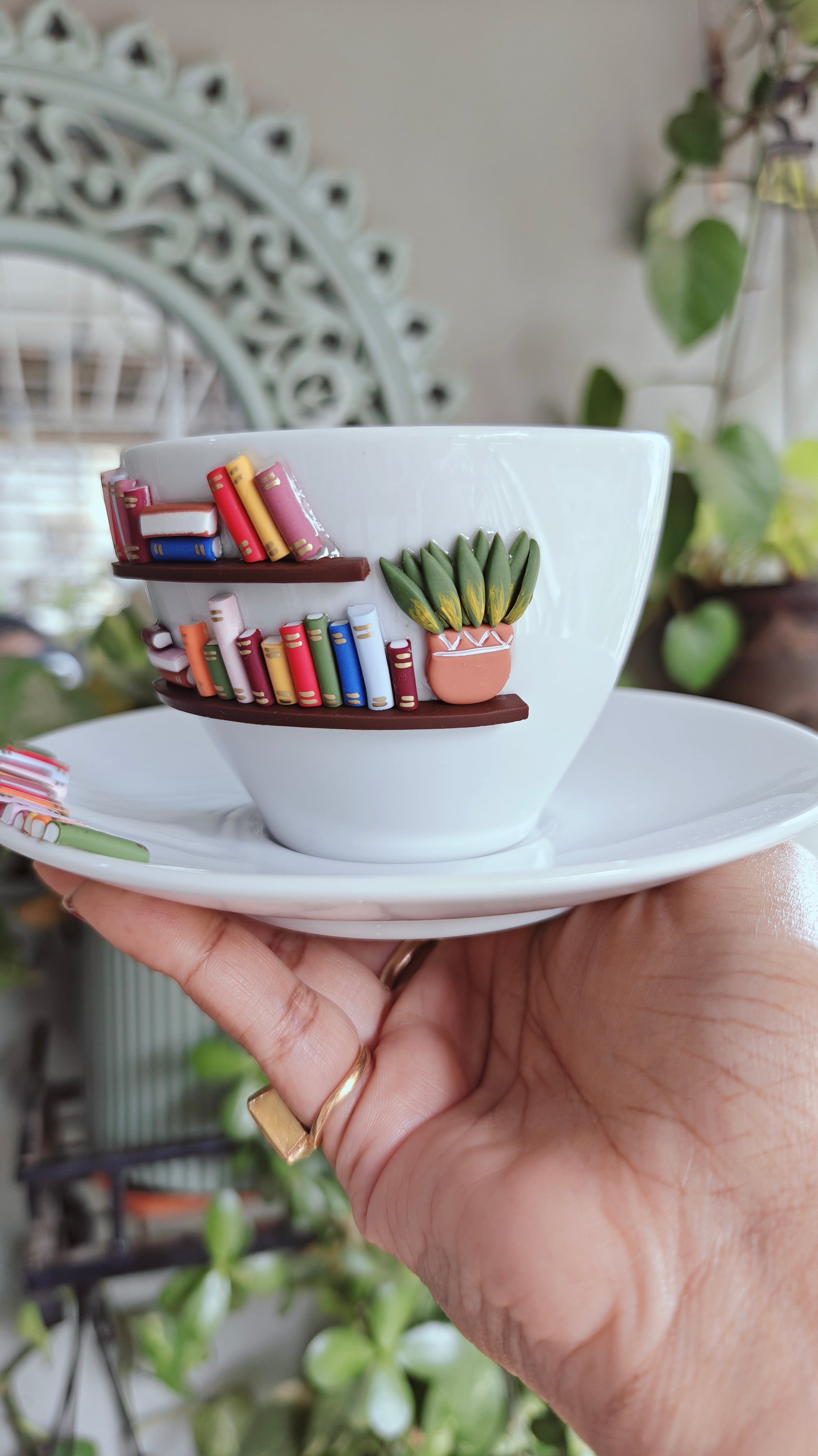 Meet your new favorite reading companion — a charming cup that brings your love for literature to life. Decorated with miniature bookshelves filled with colorful, whimsical books, this cup is a tiny library you can hold in your hands. Whether you're curling up with a classic novel or diving into the latest bestseller, this cup adds a touch of literary magic to every sip.