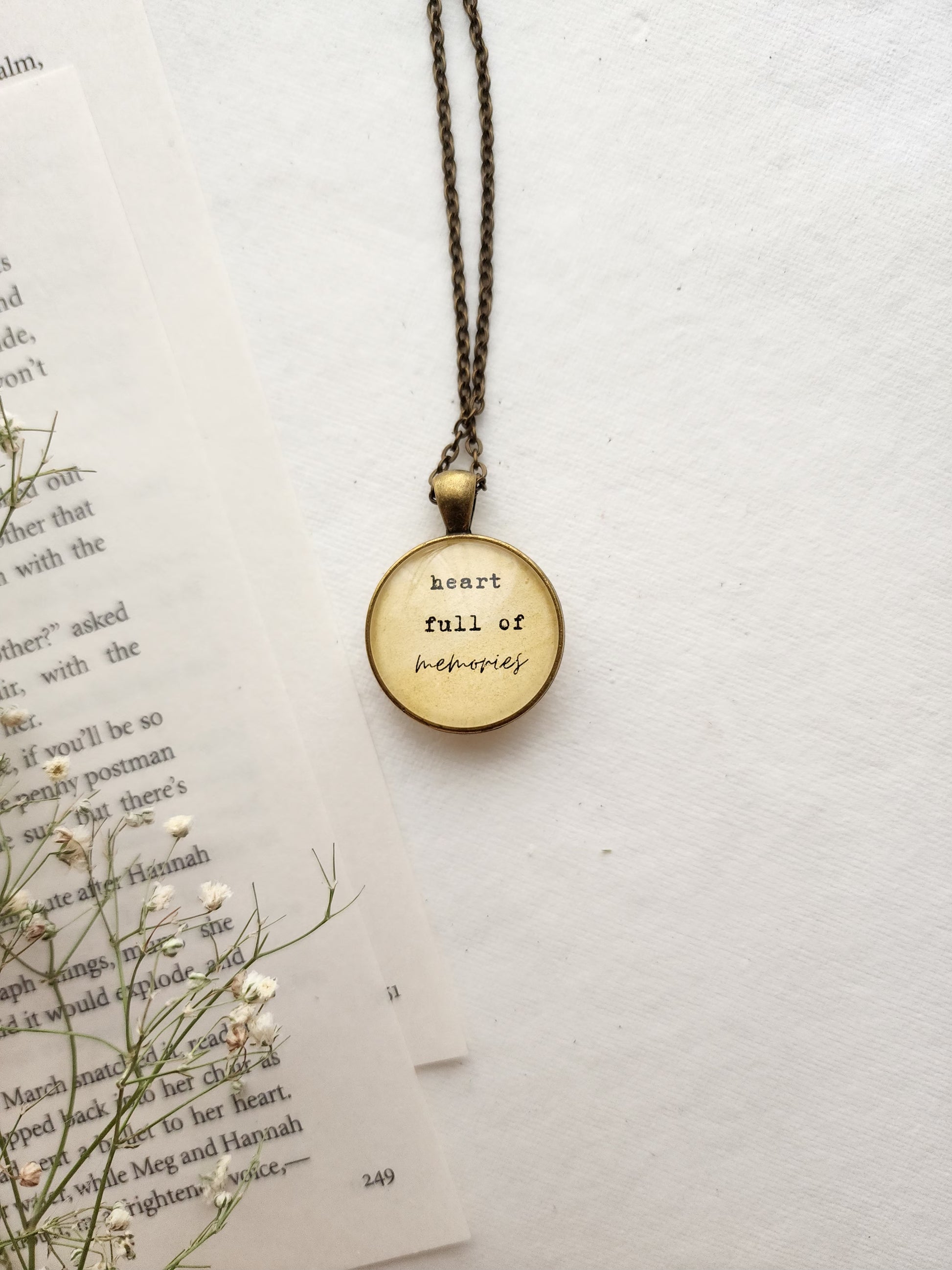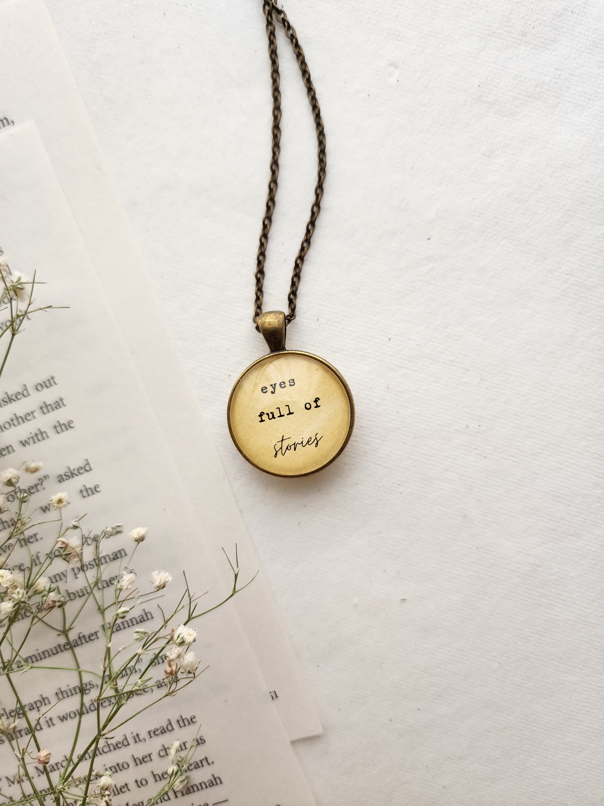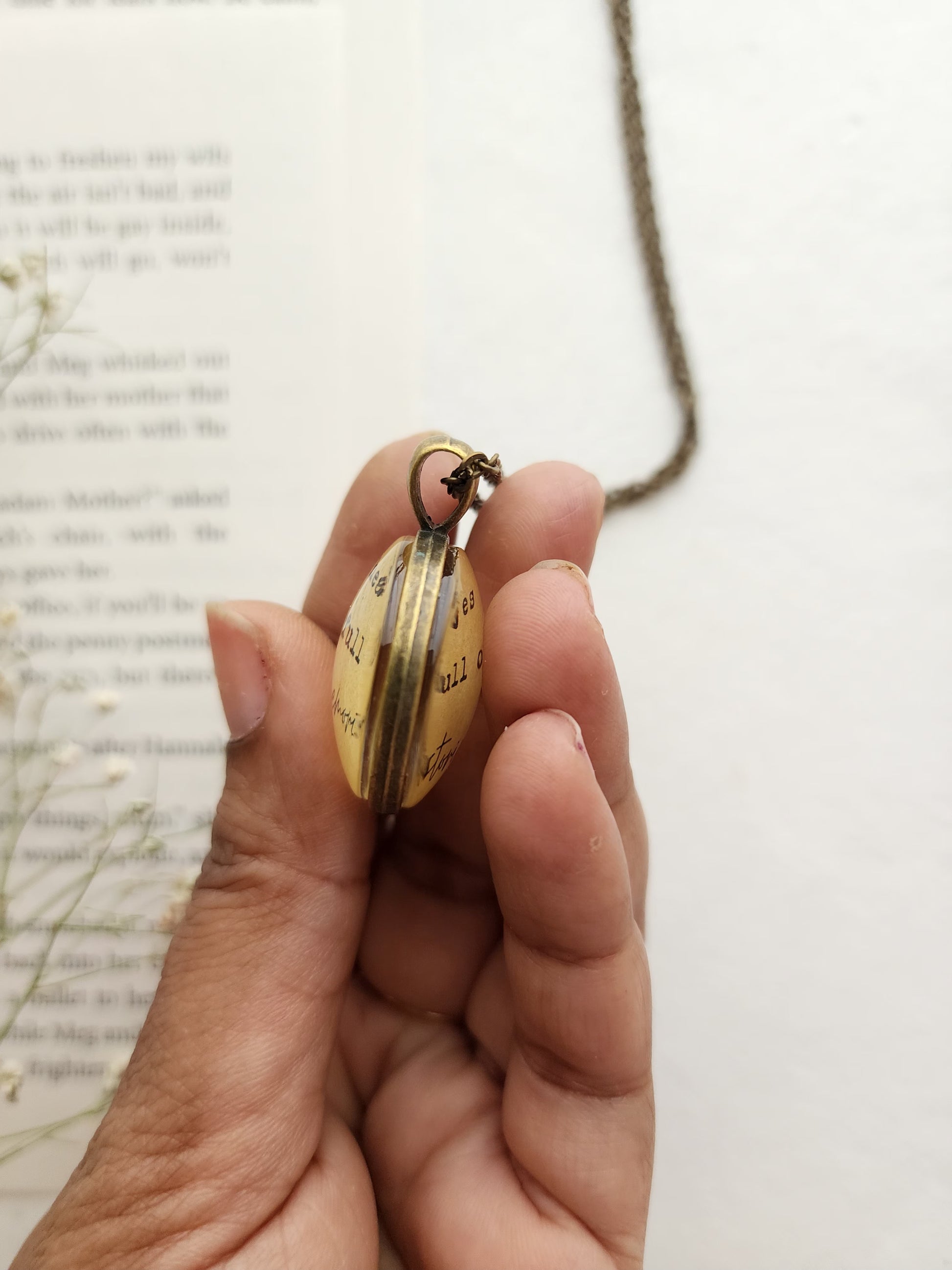 This handcrafted quote pendant necklace is the perfect accessory for every booklover, bibliophile, and literary soul. Featuring a meaningful quote sealed under glossy epoxy resin, this piece adds a touch of vintage charm to your outfit while celebrating your love for books and beautiful words.