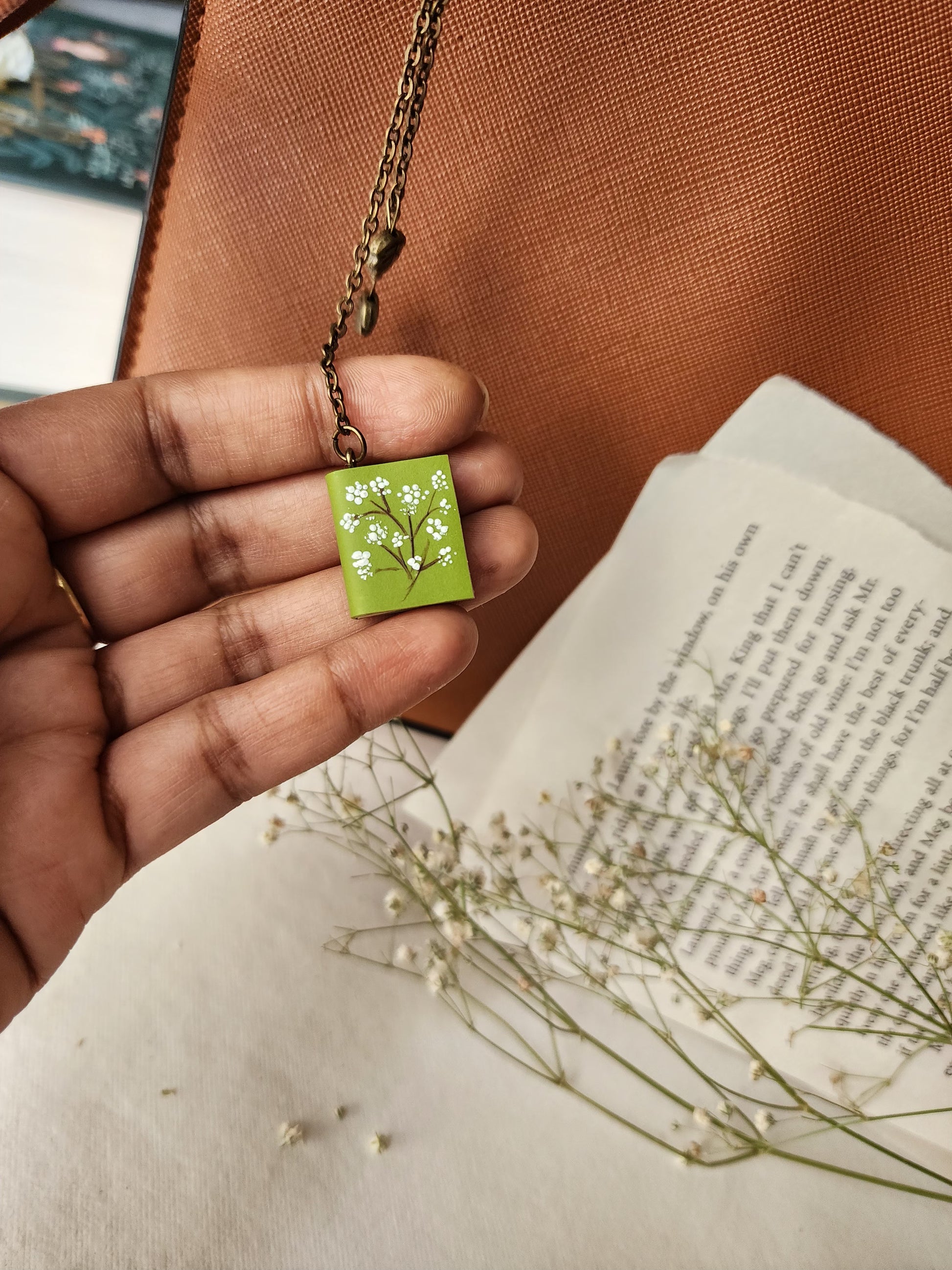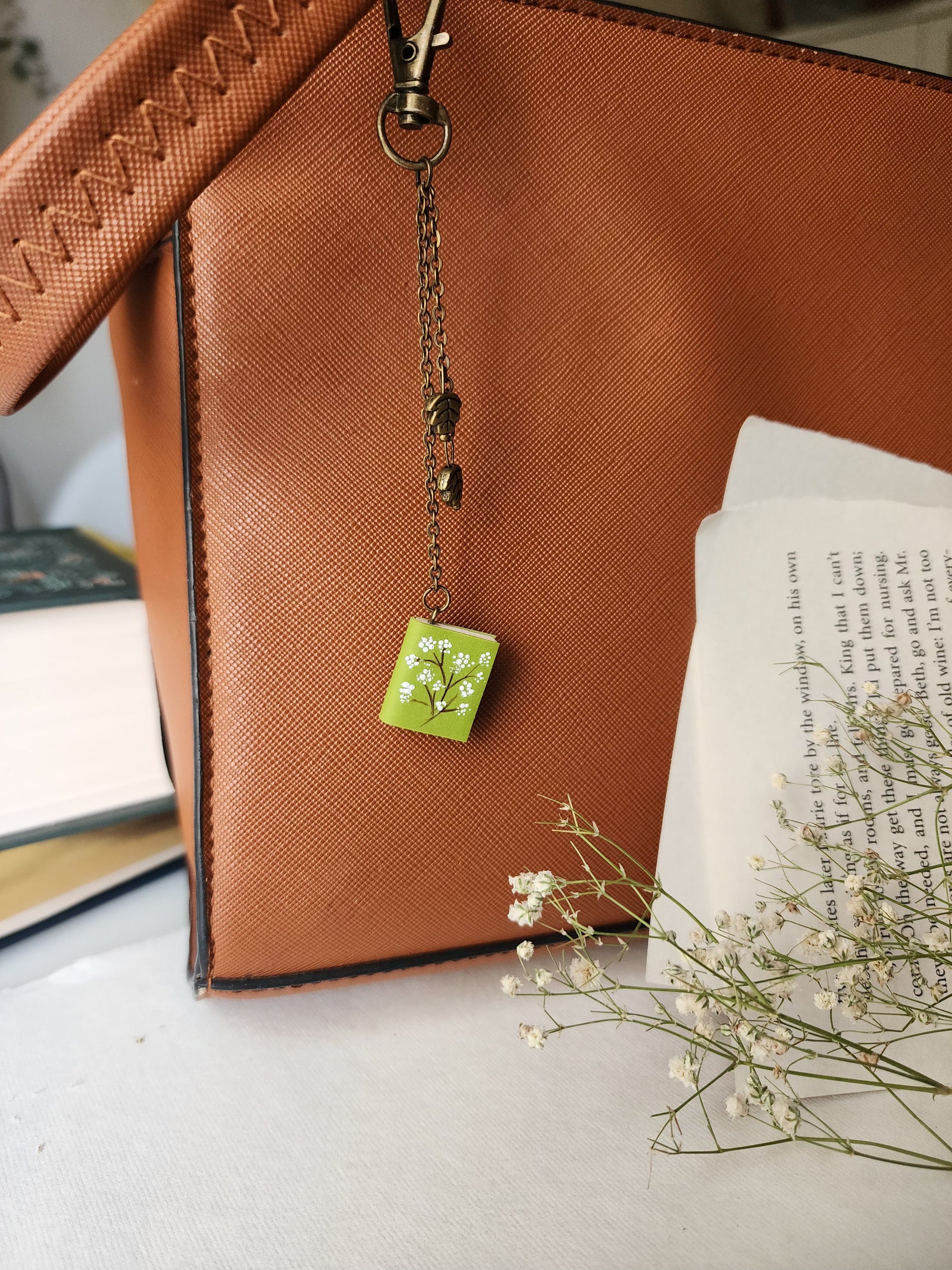 This handmade bag charm is a tiny literary scene lovingly sculpted from polymer clay. Lightweight yet detailed, it adds a magical bookish accent to your handbag, backpack, or tote.
